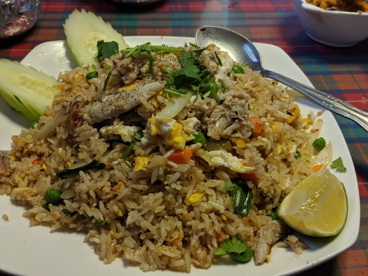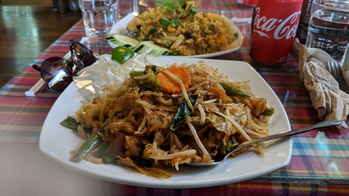 Ordered to go (phone, in person pick up). Satay chicken quality is amazing, with rich peanut sauce. Pad see ew and pineapple fried rice also cooked very well. Portion size reasonable. Pricing is reasonable. Update: added video, and tried dine in. Khao Soi is rich in flavor and is recommended (5/5). Fried Whole Fish is well made , with lots of fruits on top (4/5). Interior design of restaurant is cute ; as it is remodeled from an old home. Free street parking is easy.
