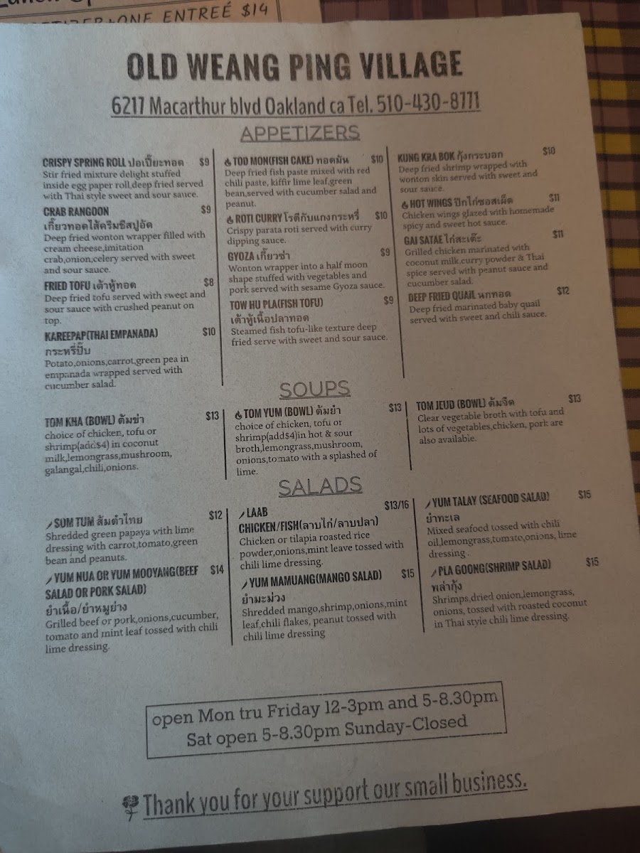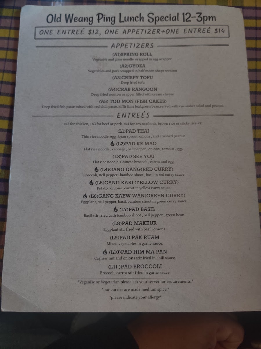 The menu at Old Weang Ping offers a straightforward, approachable selection of classic Thai dishes that fit comfortably into both casual lunches and relaxed dinners. It’s a balance of comforting plates and satisfying bites, with flavors that invite you to savor each moment in a warm, family-like setting.